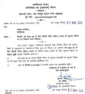 रायपुर | छत्तीसगढ़: राज्य सरकार के आबकारी विभाग ने वित्तीय वर्ष 2025-26 के लिए नई शराब दरों की घोषणा कर दी है। इस फैसले के तहत 1 अप्रैल से शराब की कीमतों में 4% की कमी आएगी, जिससे उपभोक्ताओं को राहत मिलेगी।