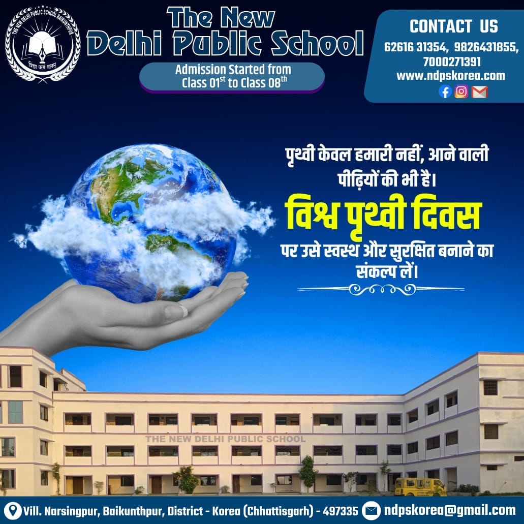 बैकुण्ठपुर – गत दिवस विश्व पृथ्वी दिवस के अवसर पर द न्यू दिल्ली पब्लिक स्कूल बैकुण्ठपुर में छात्रो द्वारा विभिन्न कार्यक्रम का आयोजन किया गया। कार्यक्रम की शुरुआत भारत माता की छायाचित्र पर दीप प्रज्वलित कर किया गया। इस अवसर पर मुख्य अतिथि के रूप में गुरु घसीदास टाइगर रिजर्व के इंजीनियर राहुल ऑर्गे व विशिष्ट अतिथि के रूप में फॉरेस्ट बीट ऑफीसर सुजीत कुमार लहरे एवं अतिथि संगीत शिक्षक भूपेंद्र कुमार सारथी उपस्थित हुए।